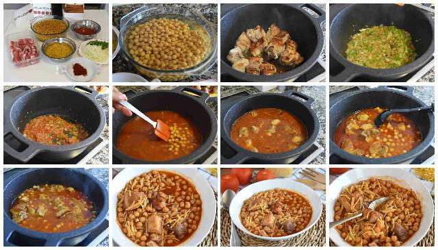Dificultad: muy fácil Raciones: 4 – 6 personas Tiempo: 1 hora y 30 minutosIngredientes de los fideos con costilla y garbanzos: