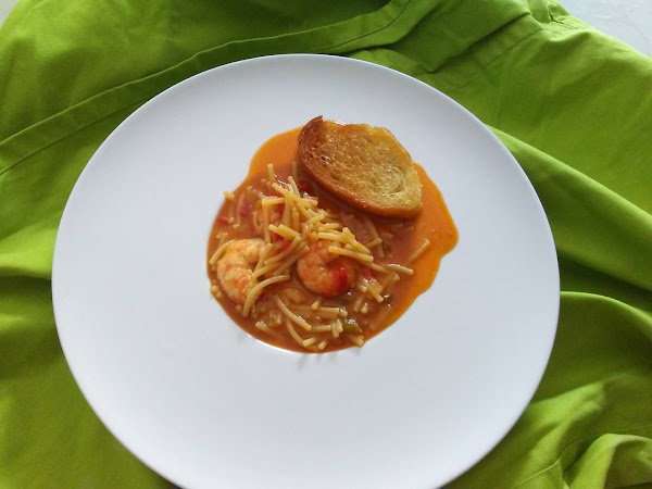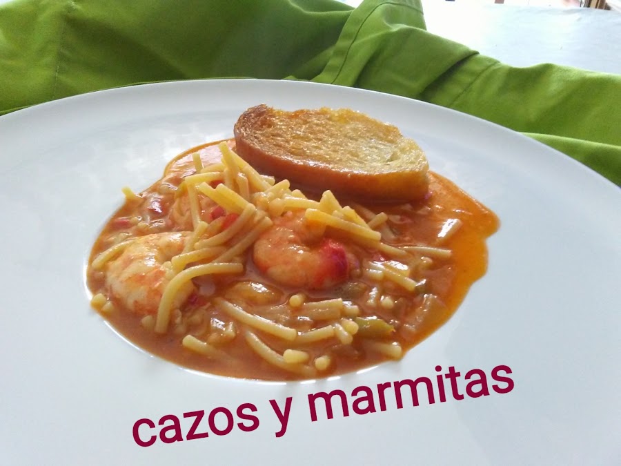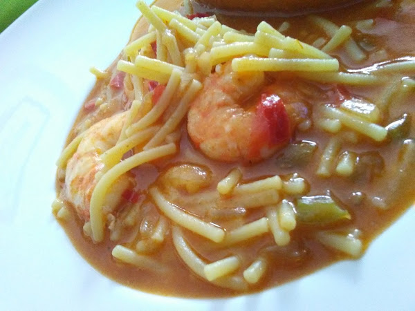 Añadir el vino manzanilla y a continuación , echamos el caldo hasta que el fideo esté a punto. No dejar que se pasen los fideos.