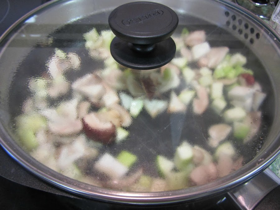Salteamos dos minutos a fuego más vivo, bajamos un poco la intensidad, tapamos, y dejamos que se vayan haciendo durante unos 5 minutos.