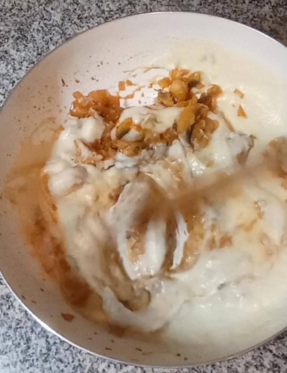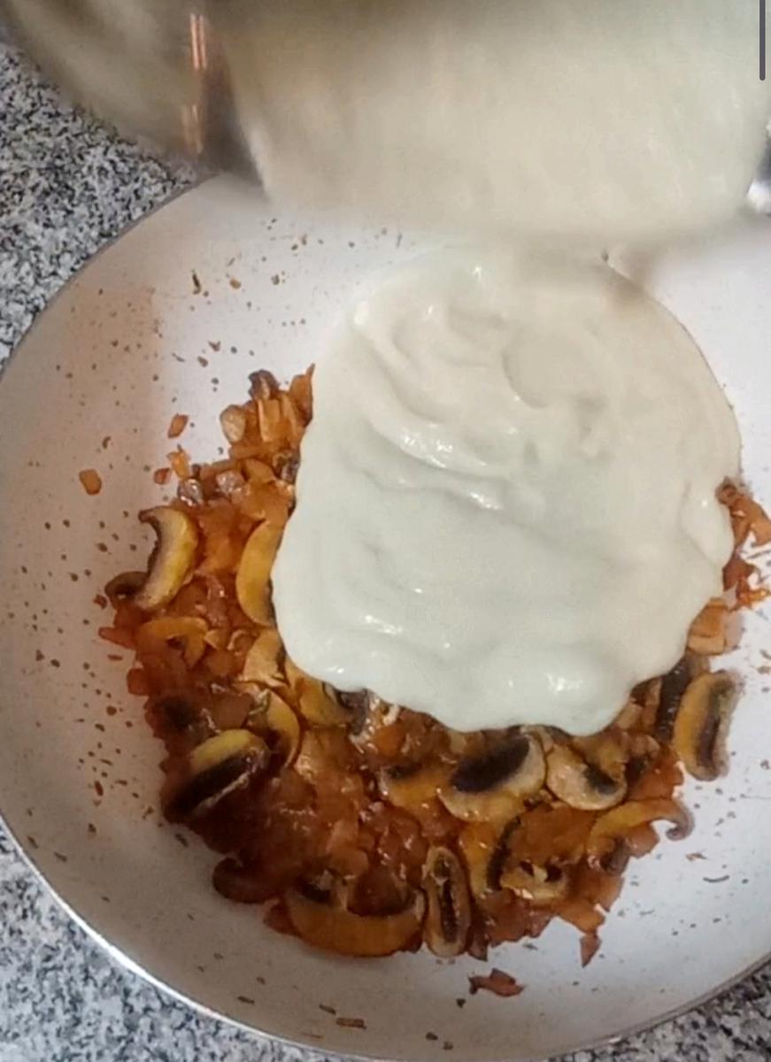 6- Incorporar la crema a la preparación de los champiñones, mezclar