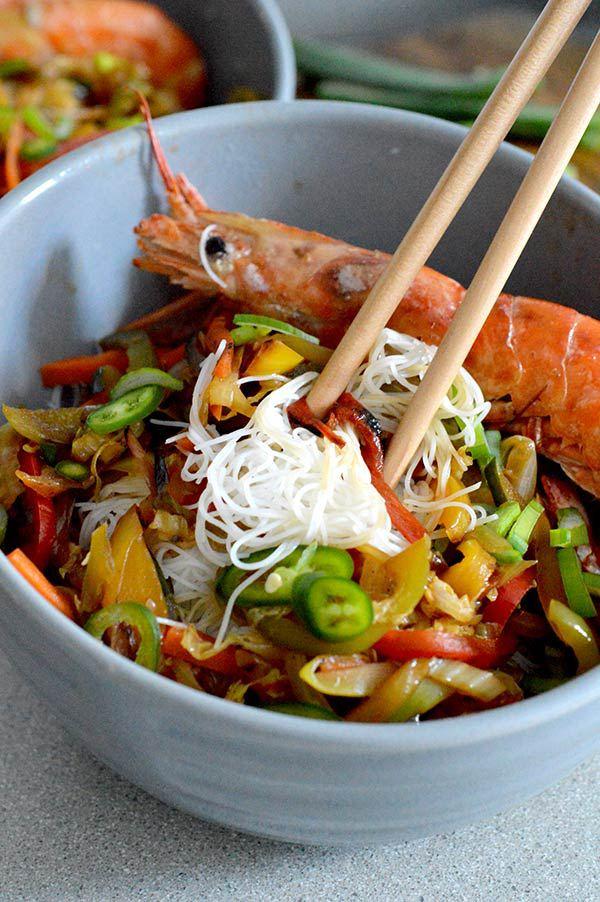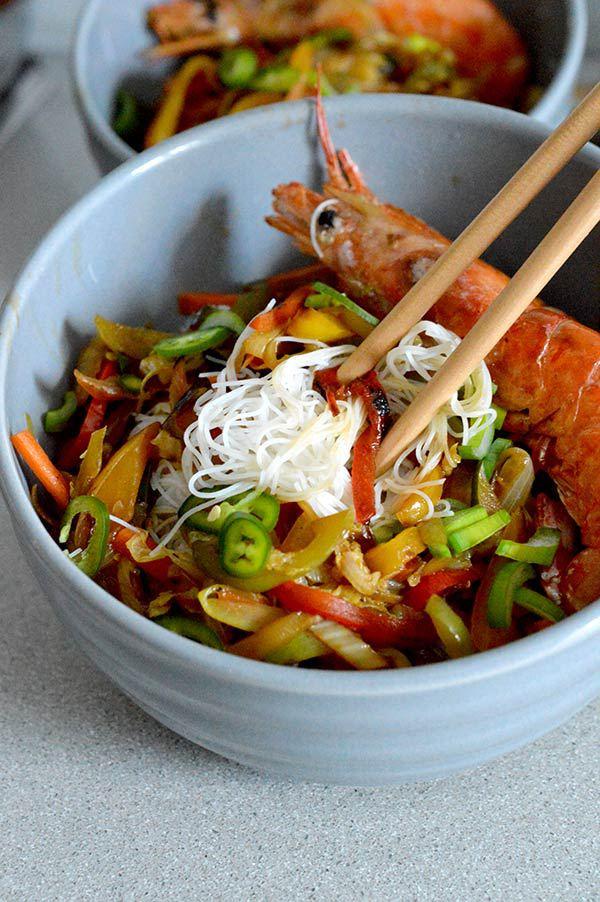 La receta de fideos con verduras que os traigo hoy es super rapida y sencilla de hacer y ademas de muy sana, lo bueno que tiene esta receta es que la puedes hacer con lo que tengas en la nevera y por eso es perfecta! yo le he añadido unas gambas a la plancha pero podéis hacerlo solo con las verduras o añadirle pollo, tofu o lo que mas os guste!