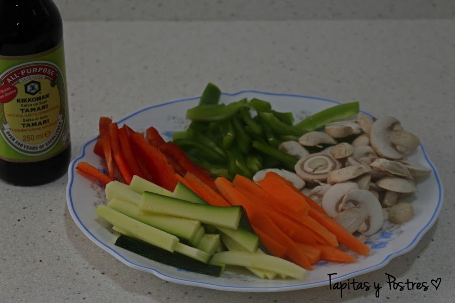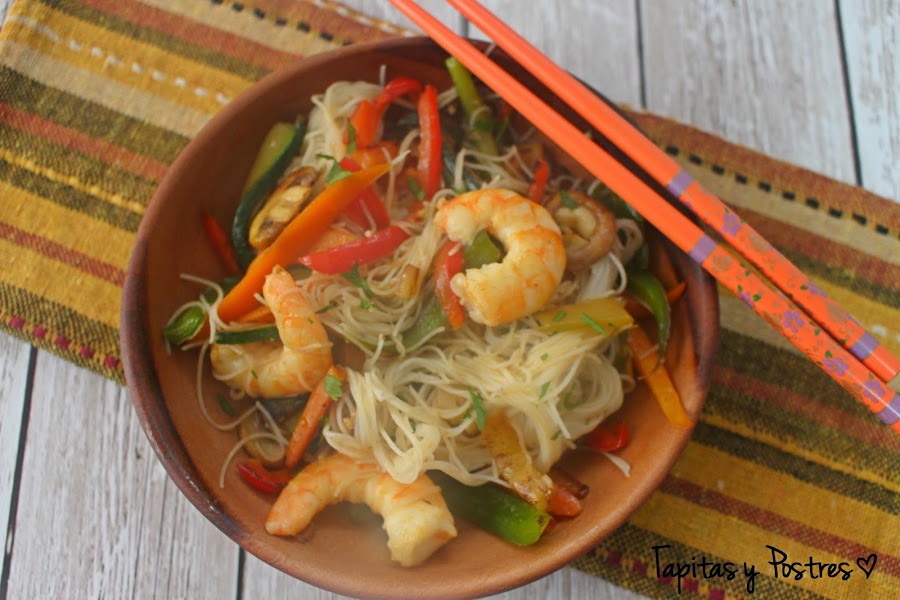 El problema es que no los he encontrado. He encontrado fideos chinos, que no es lo mismo, pues los de Rebeca parecen más unos tallarines, pero me han servido igualmente.