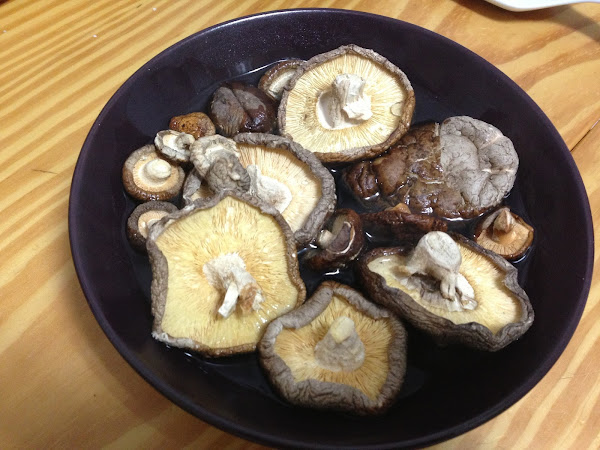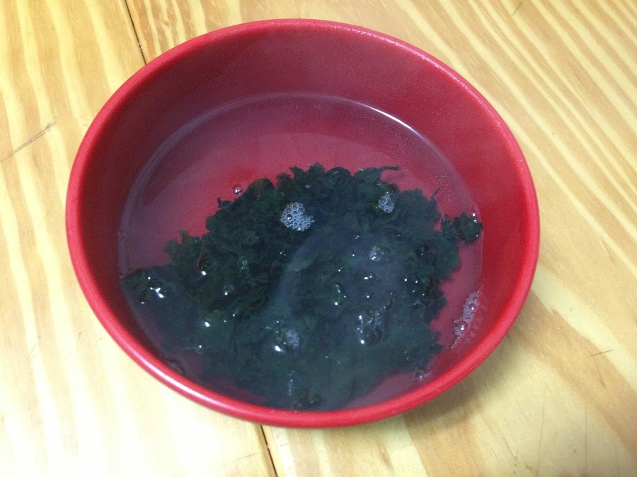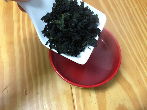 Calentamos agua y, por separado, hidratamos el alga wakame y las setas (setas y shitakes). Lo dejamos así hasta el final de la receta.