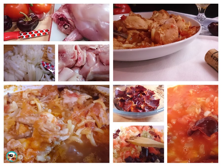 1 conejo troceado, 3 ñoras (pimientos rojos secos).