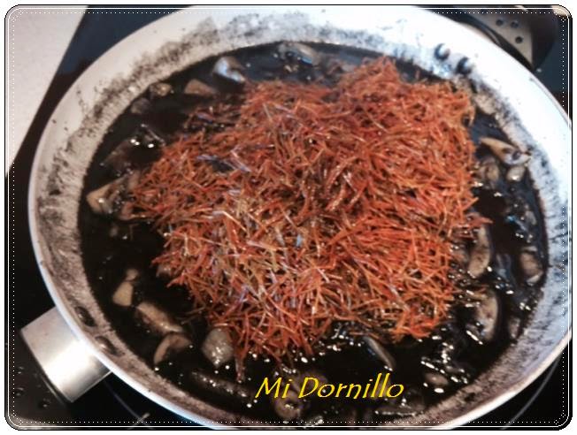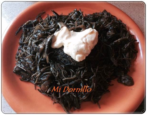 Nunca se me hubiese ocurrido hacer fideos negros con fideo finos del nº 0. El resultado es... muy negro...jajjajaja, pero es exquisito y diferente.