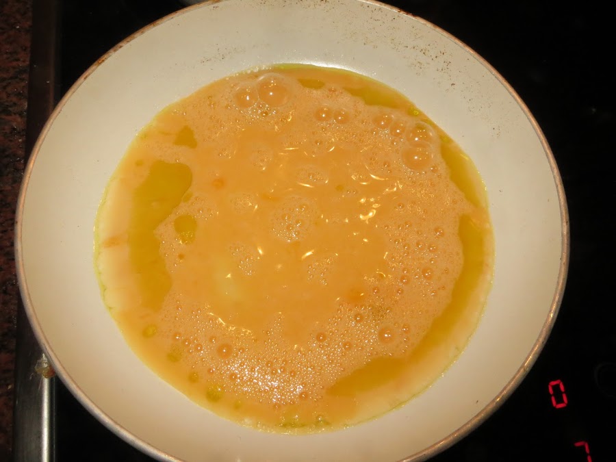 Lo primero que hacemos es cocer la zanahoria durante 15 minutos. Mientras cortamos el jamón de york en cuadrados. Echamos un poco de aceite en una sartén, batimos el huevo con un poco de sal y lo echamos en la sartén para hacer una tortilla francesa. Reservamos.