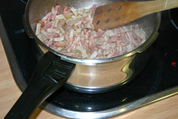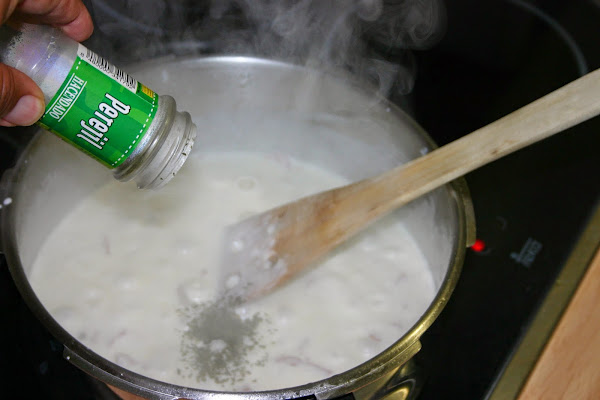 una vez que este bien fritito poco a poco vamos incorporando la nata (crema de leche)