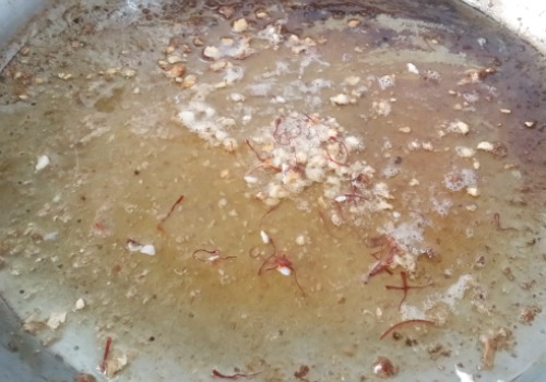 Retíralo a un plato. Si queremos añadir algún cefalópodo tipo calamar o sepia, es el momento. Pela y pica los dientes de ajo finamente y agrégalos a la paella junto con el azafrán,