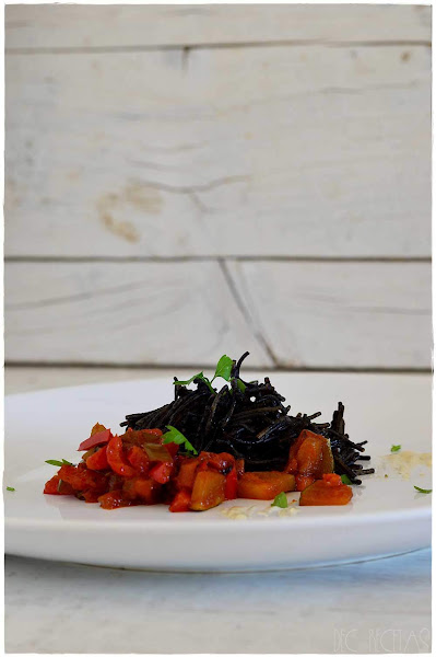 ¿has probado ese crujiente característico de los fideos fritos y de punta al horno? buaaaaa, tienes que estar imaginándote mientras te lo cuento...y si no...YA ESTAS TARDANDO!! seguro que tienes estas verduras y fideos en la despensa...sólo tienes que comprar la tinta...