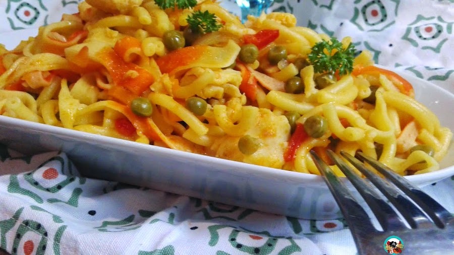 Anoche hice esta fideuá, no tenia muy claro si hacer una merluza con arroz caldoso y una fideuá. Al final me decante por la pasta, pensé en lo rápido que se cocina y listo.Fideuá con merluza