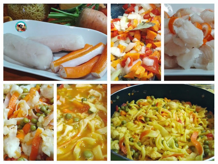 300 gr de fideuá, 2 varitas de merluza, 4 varitas de surimi.