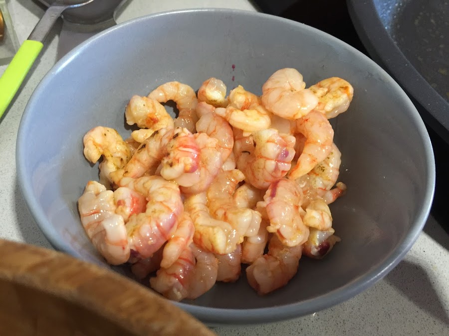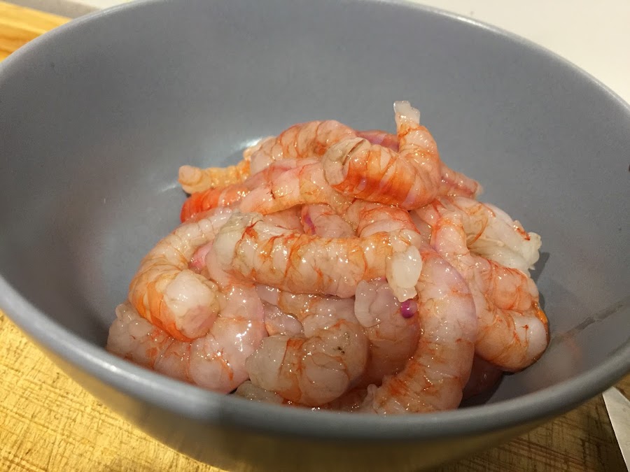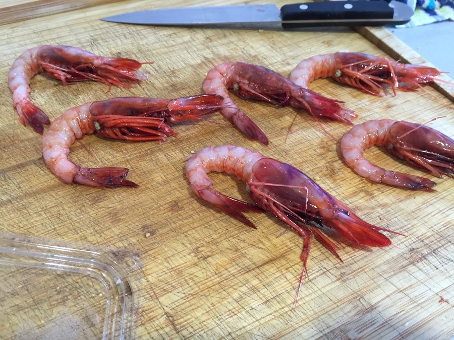 2. Para hacer la fideúa compramos 500g de gamba de Palamós pequeña y 200g de gamba de Palamós grande. Todas son igual de sabrososas, las pequeñas son ideales para servir enteras peladas en la fideuá y usar las cabezas y cáscaras para el fumet y las grandes son ideales para servir enteras con la cola pelada.