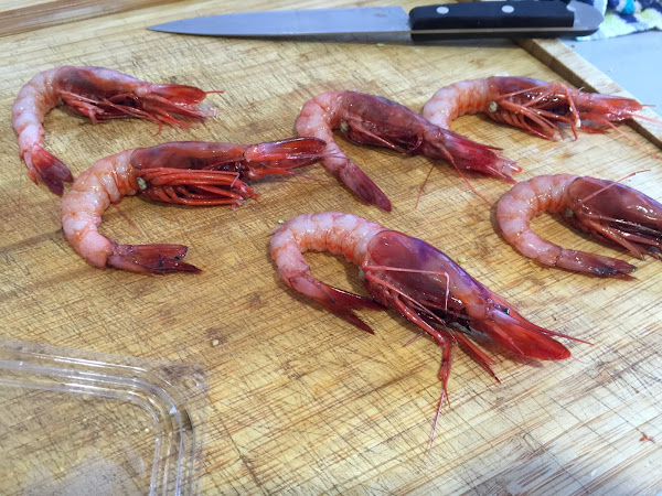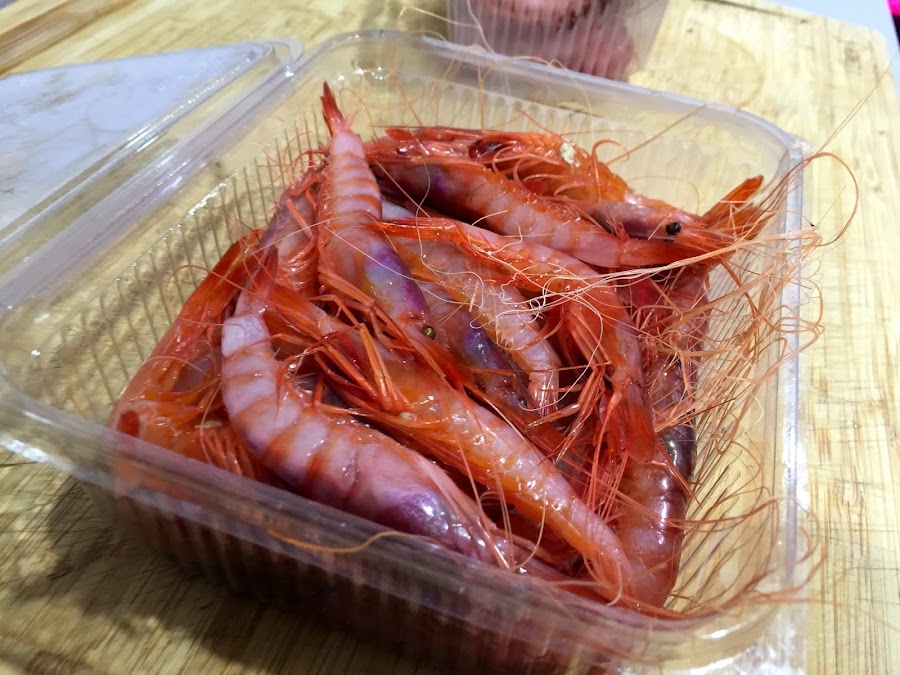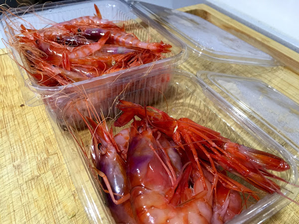 1. Para preparar esta fideuá nos hacen falta unas gambas frescas de Palamós, para mi la mejor gamba roja que existe. Cada tarde en la lonja de Palamós venden los productos que han pescado durante el día. Este es el mejor lugar para comprarlas, más frescas que aquí no las encontraremos en ningún lugar. No siempre resulta fácil poder ir, pero si podéis aprovechar, no lo dudéis. Nosotros este fin de semana, de regreso a casa, hicimos una parada exprés para comprarlas. Como íbamos a tardar cerca de una hora en llegar a casa nos prepararon la bolsa con hielo para llegaran en perfecto estado.
