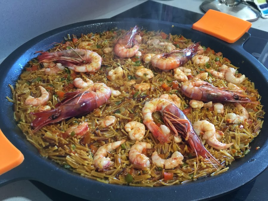 Para hacer esta fideuá he usado el mejor fideo que existe, los fideos con gambas de Palamós de SalNostrum. Estos fideos están elaborados con sémola de trigo duro de primera calidad, sal de Guèrande con gambas y agua de manantial.