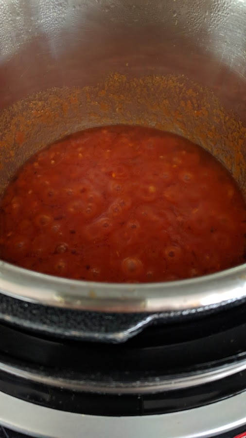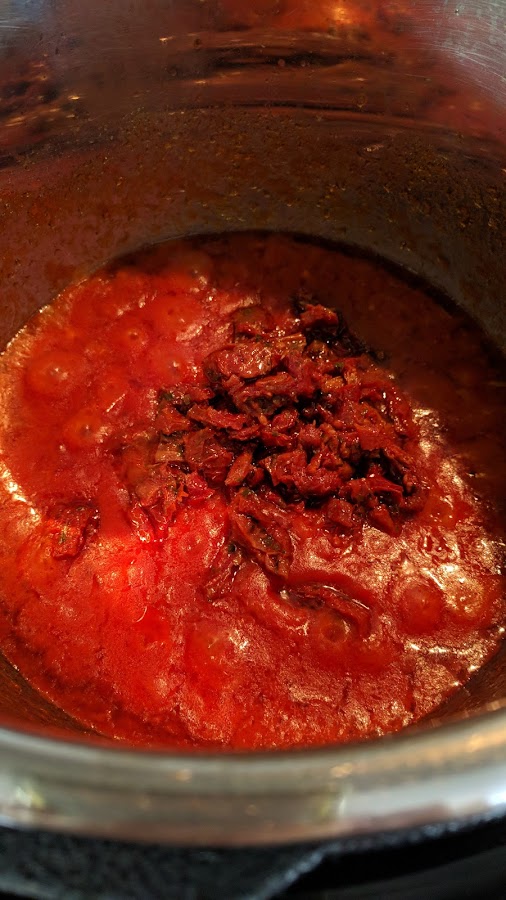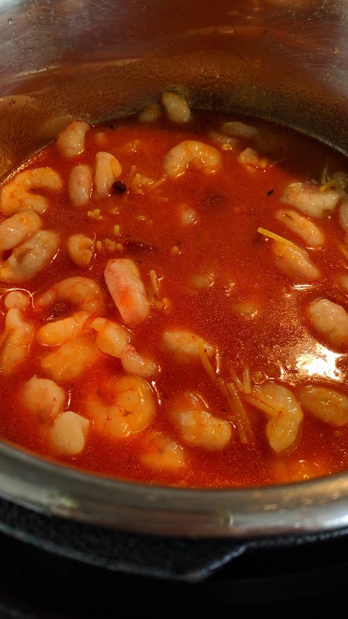 Al terminar despresurizamos manualmente, abrimos y removemos. Prueba siempre los fideos. Si están demasiado duros para tu gusto deja que cuezan un minuto con la olla abierta. Para nosotros estaban bien y saqué la cubeta de la olla. Si prefieres que te quede más seca no pongas tanto caldo y programa 4 minutos de cocción