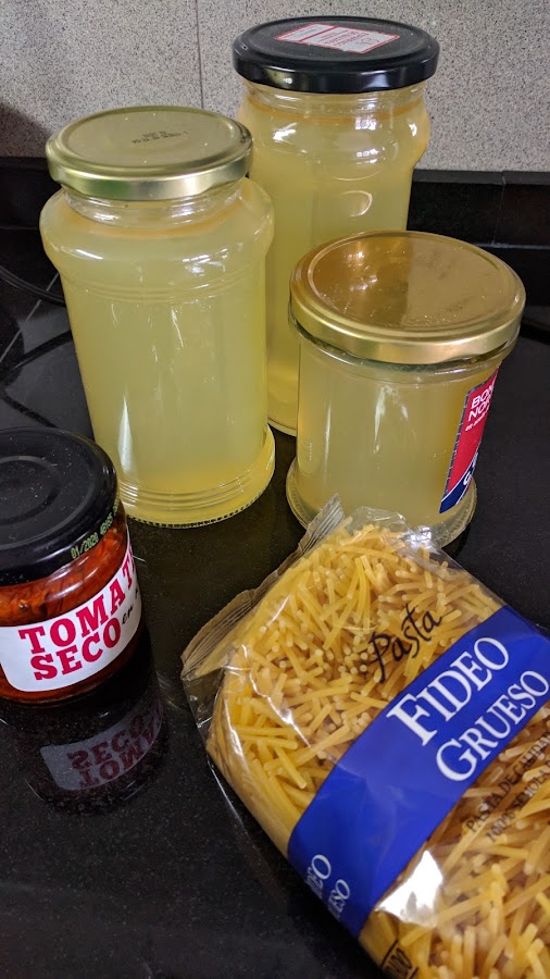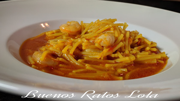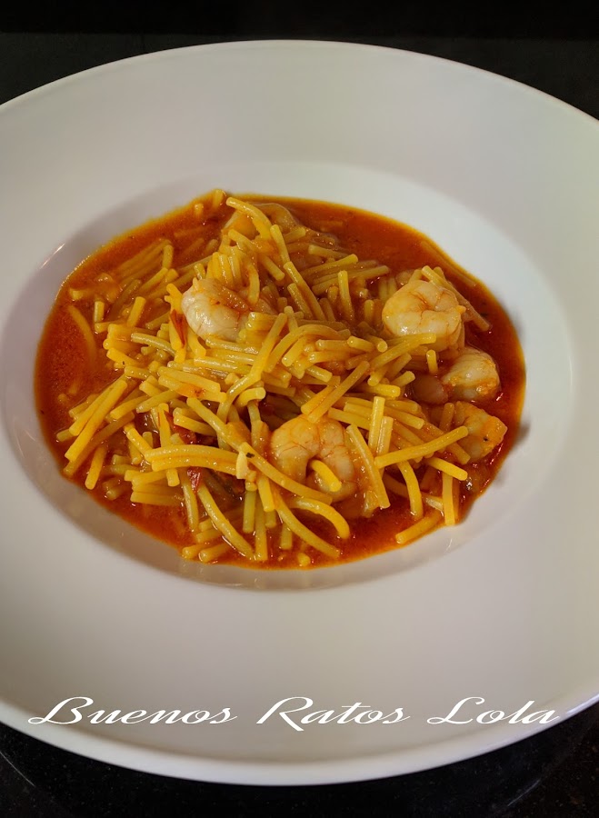 Cómo tenía mucho caldo y poco espacio en el congelador he preparado una fideuá con un intenso sabor