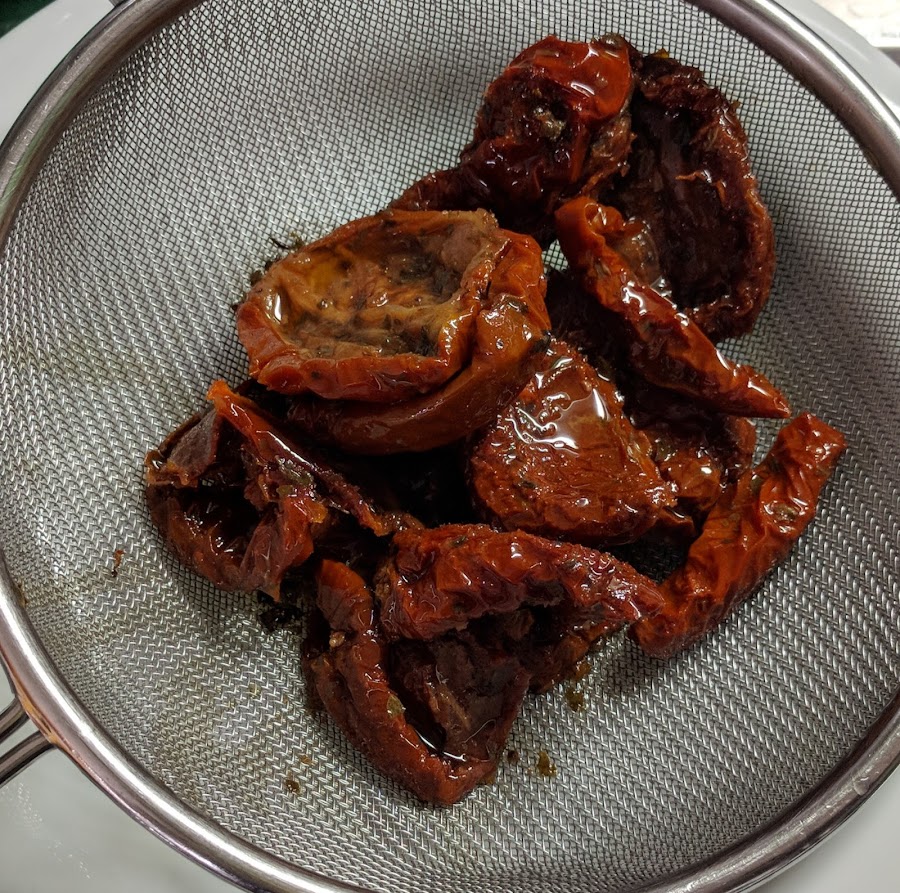 Mientras se hace escurrimos los tomatitos y los partimos. Yo me apaño muy bien con unas tijeras