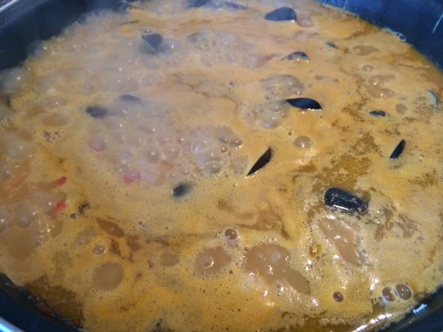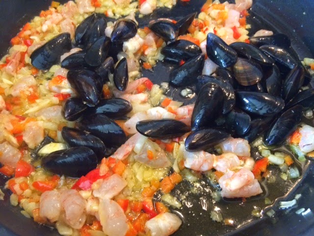 Así que me pasé por la pescaderia y cogí unas gambas y unos mejillones y en menos de 15-20 minutos tenía está riquísima fideúa lista para hincarle el diente.