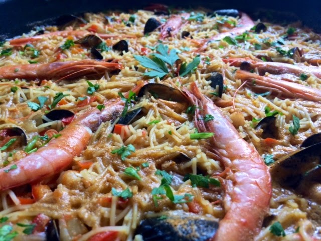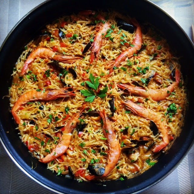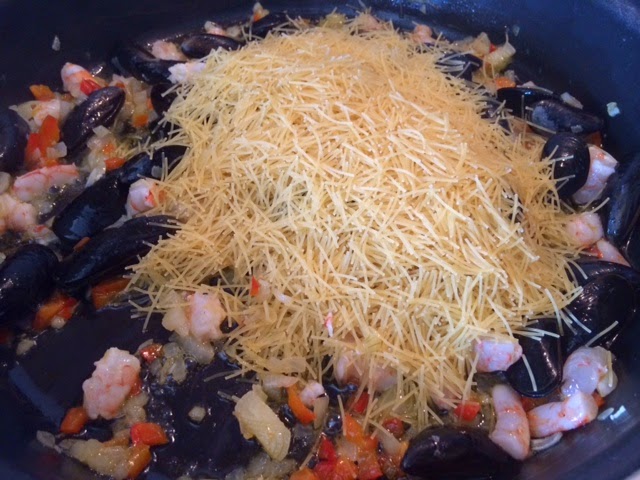 Pues que tenía yo ganas de hacer una fideúa, oye!! Y el otro día descubrí en el super que Aneto ha sacado un caldo para paella con sofrito y me dije...esto tiene que estar de muerte!!