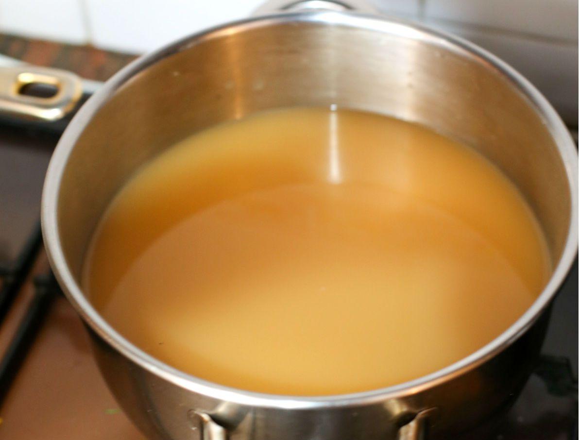 Calentar en una olla 1 litro y medio de caldo de pescado natural. Puedes hacerlo tu mismo o comprarlo hecho (trata de que sea de buena calidad ya que es fundamental para darle sabor a este plato). Si tienes concentrado de pimiento rojo o ñora añadir 2 cucharadas al caldo y revolver. Agregar también las hebras de azafrán (ambos le aportarán sabor y color a la fideuá). Mantener tapado y caliente.
