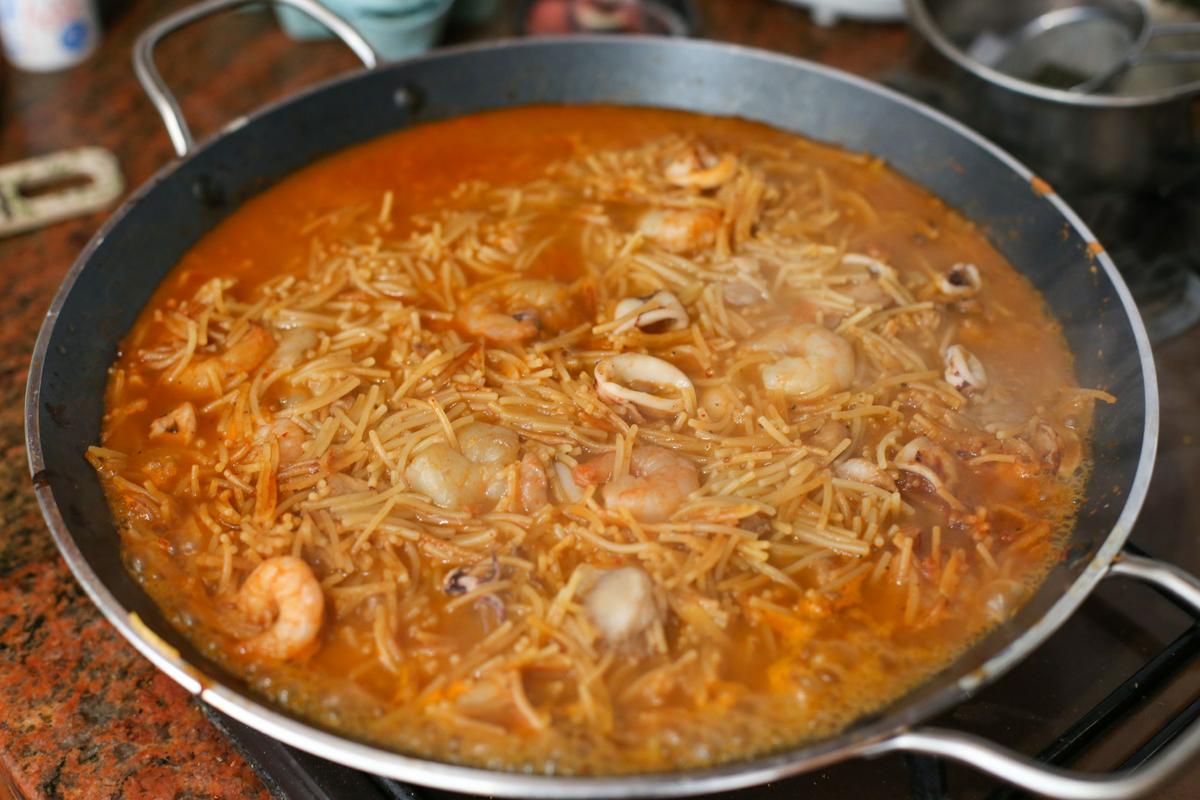 Si nunca han probado la fideuá les cuento que es una preparación muy similar a la de la clásica paella española, pero que en vez de arroz lleva fideos. El resultado es un plato más ligero que la paella, con una textura diferente pero igualmente deliciosa.