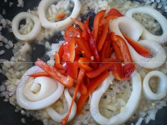 Listo esto ponemos la paella al fuego y con un chorro generoso de aceite: