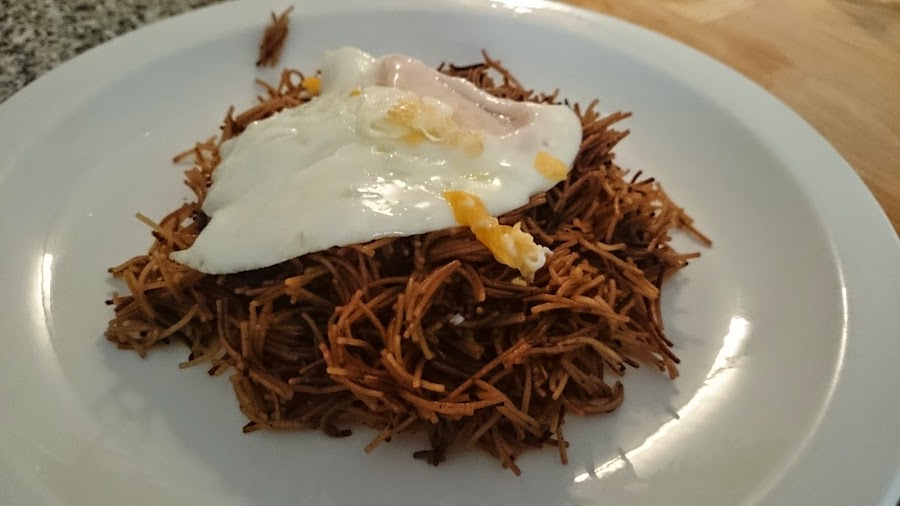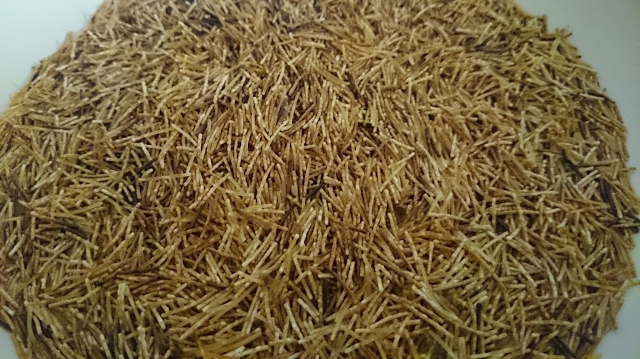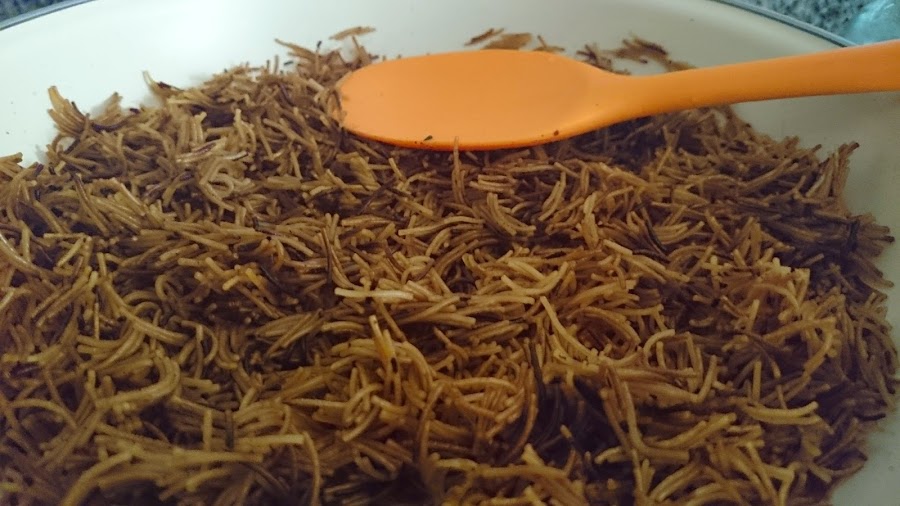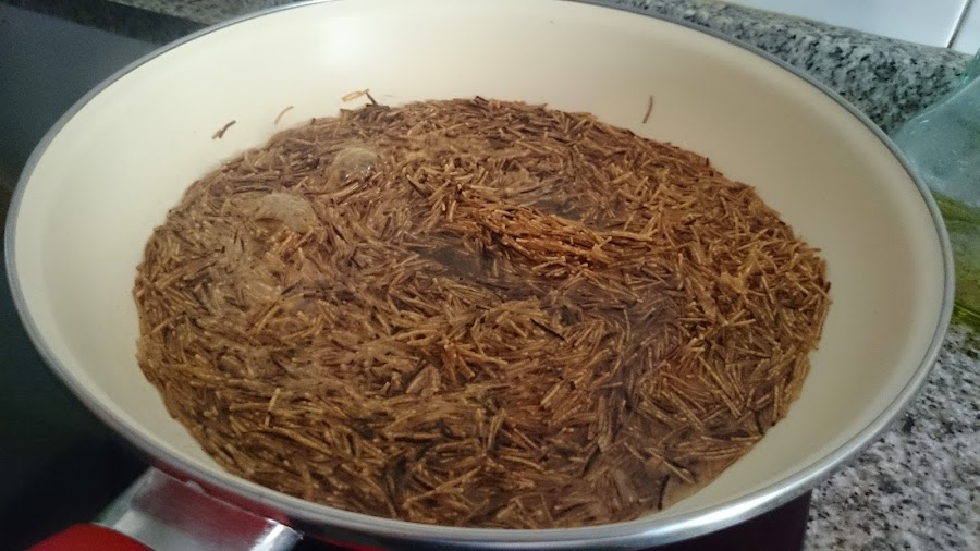 Cuando tengamos el caldo echo ponemos los fideos en una sartén y le vamos dando vueltas hasta que se doren.