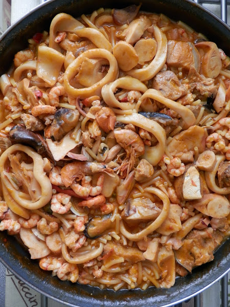 Hoy os presento una fideuá de pescado y marisco, ideal para cuando hay invitados a casa.