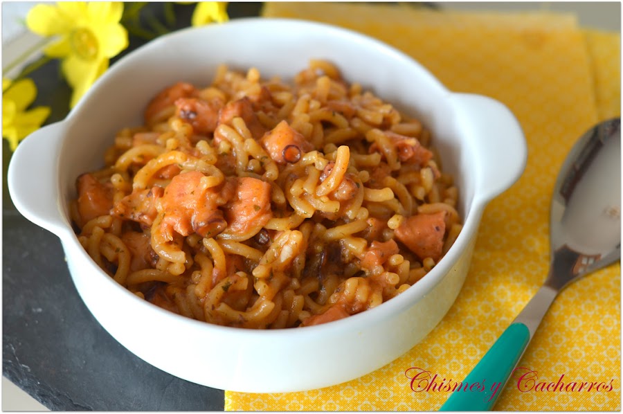 Una cosa, con esta receta con pongáis nada más, es un plato único muy completo. Se puede añadir más cantidad de pulpo si quieres. Con una ensalada de acompañamiento será una comida perfecta.