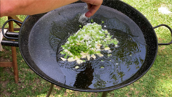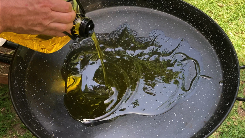 Pon la paella a fuego alto y añade el aceite de oliva.