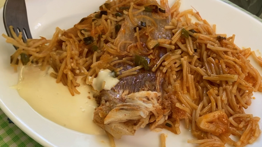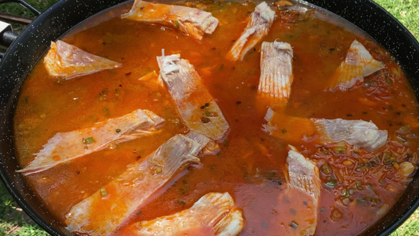 Caldo de raya (al menos el doble de cantidad que de fideos, depende del fuego)