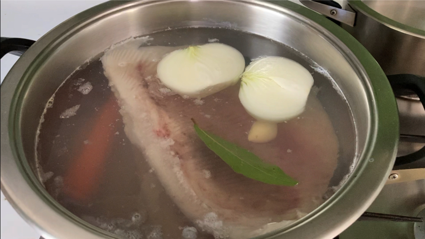 Ya tienes un estupendo caldo de pescado listo para usar y una raya preparada para comerla tal cual o para prepararla en alguna otra preparación.