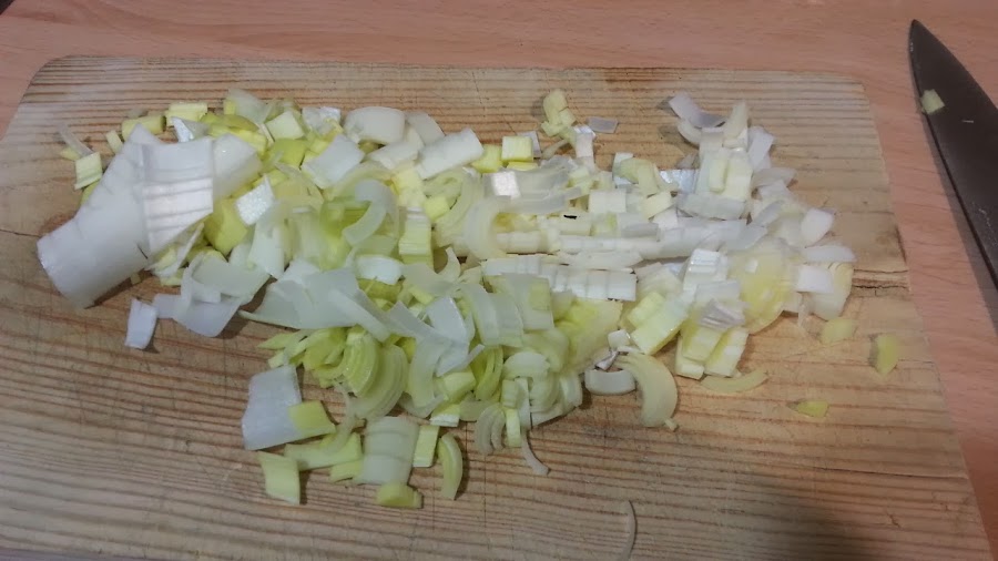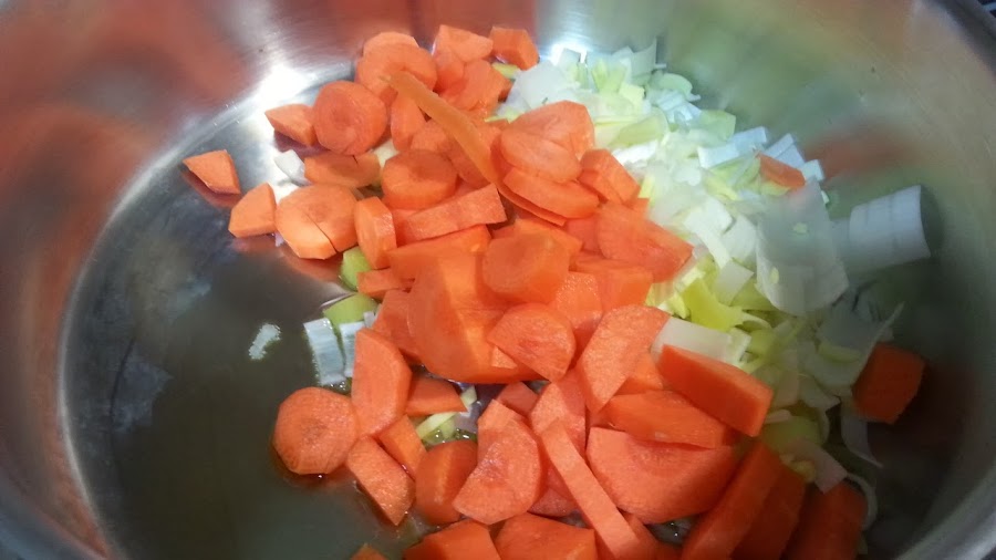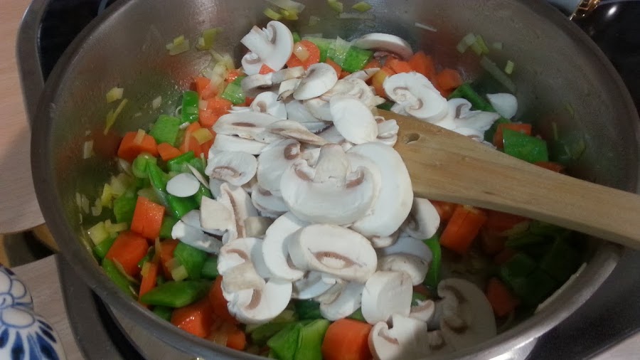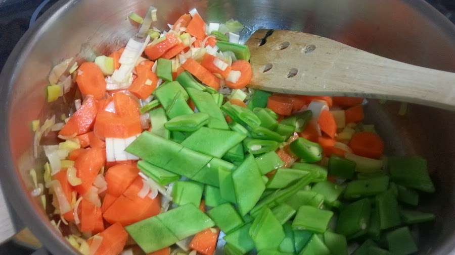 Y lo agregamos a la sarten, pochamos a fuego medio para que no se queme