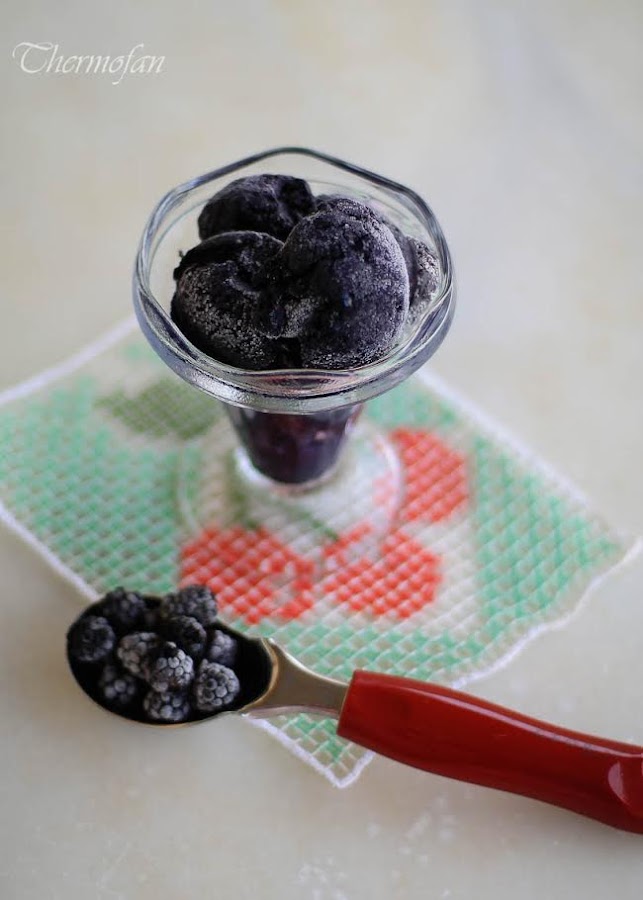 Y como una buena comida bien se merece un postre de lujo, Marisa desde THERMOFAN, lo pone en bandeja con este HELADO DE MORA Y PIÑA, con unas moras que llevaban esperando en su congelador desde la temporada pasada.