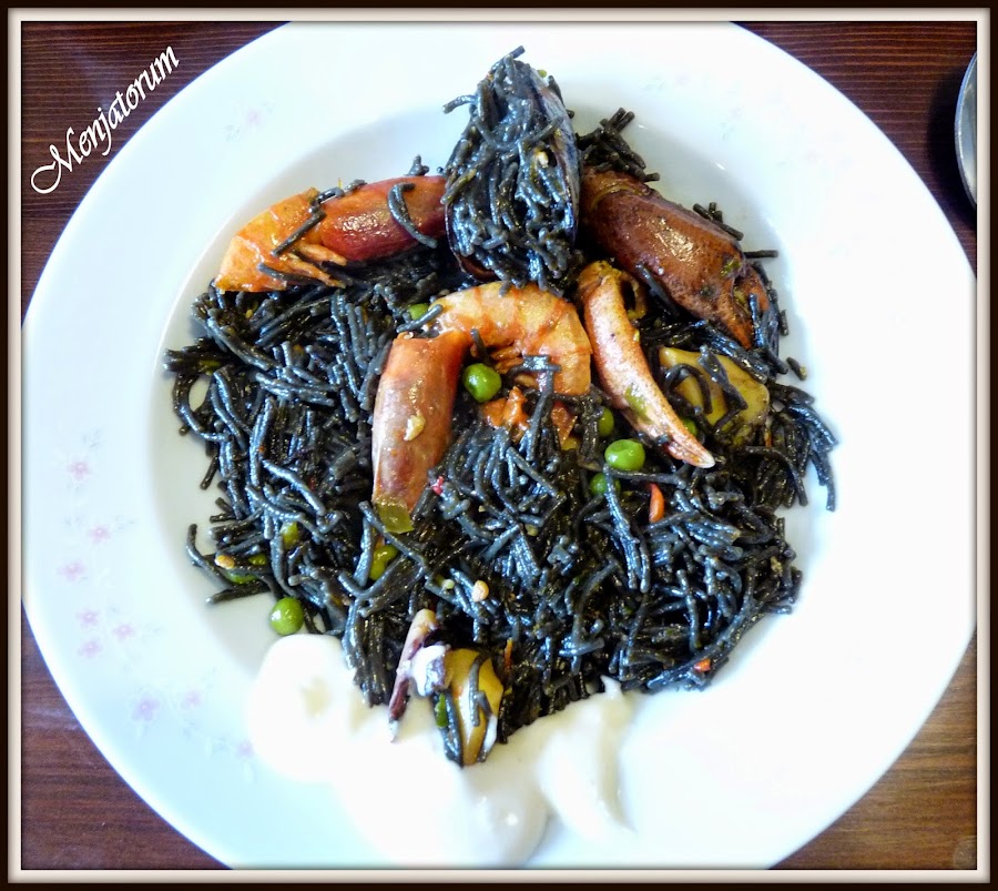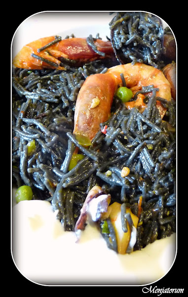 Al entrar en una nueva tienda gourmet y encontrar los fideos negros a granel a punto de poner en la cazuela no me pude resistir, bolsa en mano y a pesar fideos para preparar la fideuá del domingo.