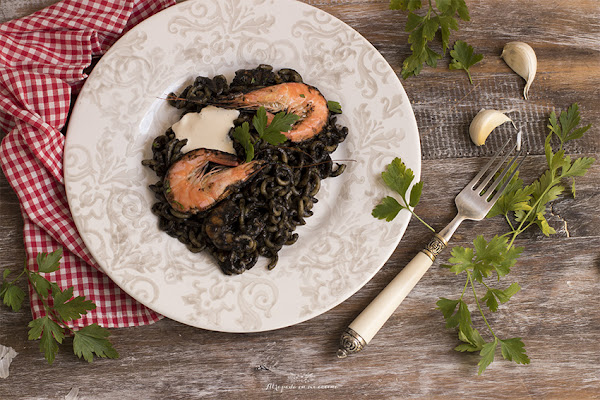 Es viernes y ya estamos en fin de semana, y en esta ocasión nos vamos a dar un homenaje con un plato bien sencillo, pero a la vez de lujo; una fideuá negra con langostinos. La elaboración es muy rápida, sólo tendremos que tener un buen fondo de ingredientes y lo demás sale sobre la marcha. Ahora os cuento.