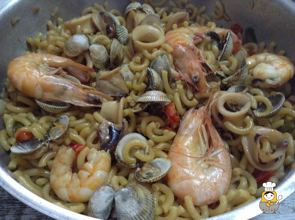 Por si se pasa por aquí algún purista de la fideuá, tengo que decir que los berberechos no van incluidos en la receta tradicional pero chicos, que queréis que os diga, como buena gallega que soy, "nunca hay demasiado marisco" es mi mantra. Así que sed comprensivos. Además los berberechos son baratos y dan un toque buenísimo a cualquier preparación.