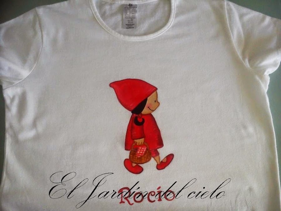 Me mandó este dibujo de caperucita para que se lo pintara en una camiseta