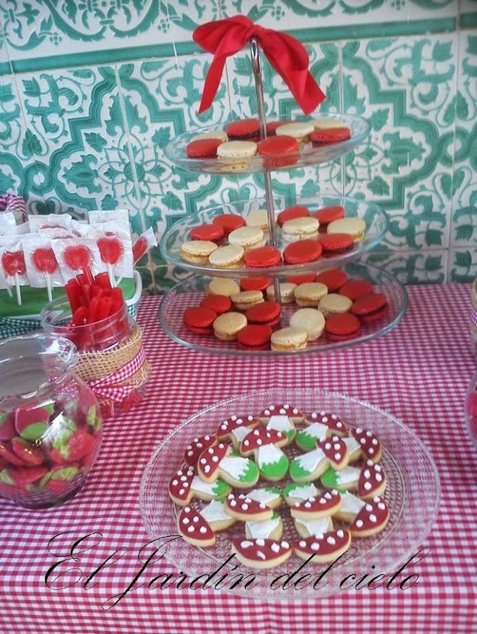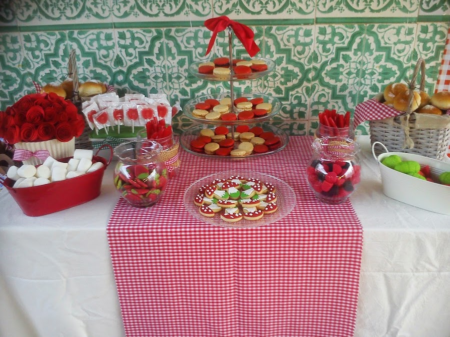 Este fin de semana hemos celebrado el cumpleaños de mi sobrina Rocío que como cada año, marca el final del verano. Siempre le preparan una fiesta temática; princesas, disfraces etc. Este año el tema ha sido caperucita y mi hermana le ha preparado este buffet de golosinas y pasteles para el que yo hice estas rosas en espiral de cartulina y los macarons en rojo y blanco a juego con todo.