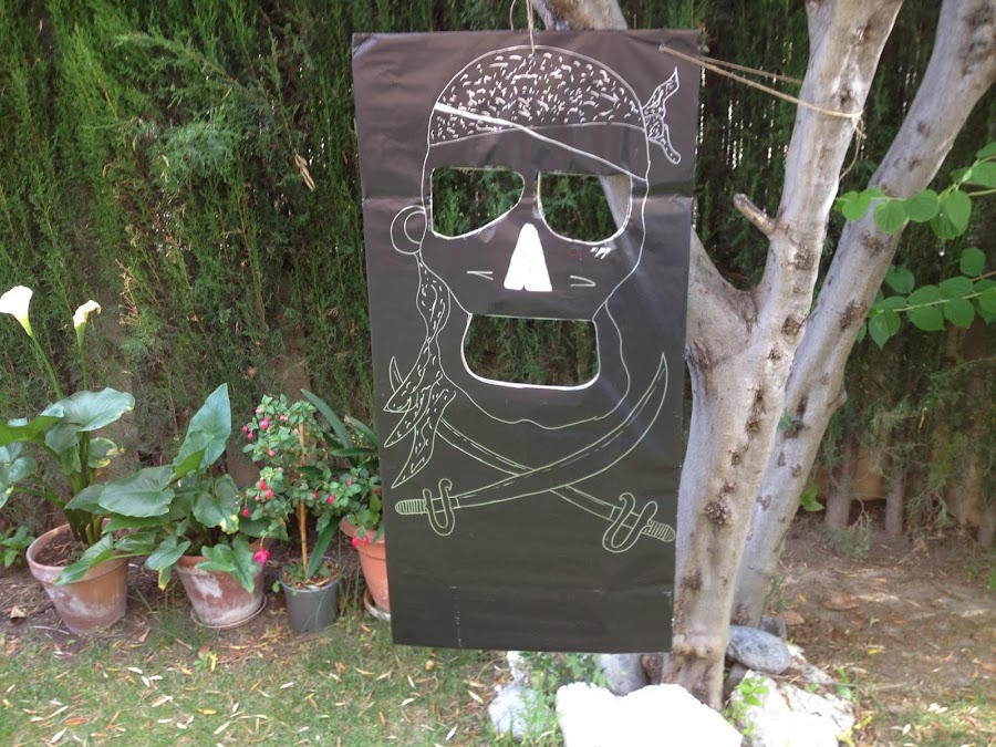 Mientras los padres se atiborran a comer, lo que más me gusta es que los niños hagan juegos de todo tipo. En esta ocasión les resultó muy divertido ?el tiro de la bola al pirata?. Solo necesitamos bolas de colores, un trozo de cartón, papel negro y pulso para dibujar la cara del pirata. Le haces unos agujeros en la boca y los ojos y listo. Gana el que más bolas enceste.