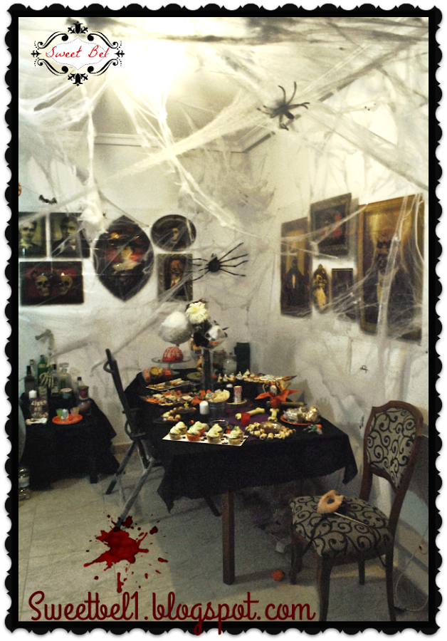 No podía dejar en el olvido mi super fiesta de halloween, ya que me lo curre un montón para caracterizar toda la casa o mas bien las estancias básicas, como salón, baño, hall, y patio y entrada a la casa.