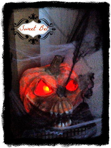 Quería haber preparado un cementerio en el patio de casa pero no puede ya que empezó a llover y ha hacer mucho aire, el primer día osea el 31 tuve el cementerio en el patio de la entrada pero al día siguiente, tuve que ponerlo en la entrada de casa con un montón de telarañas y de calabazas!!!! ya que el viento casi se había llevado todas las telarañas, no quedo mal, pero no era lo que yo quería hacer y me quede un poco chafada. pero en fin, con las condiciones meteorológicas una no puede luchar. OJALA!!!!!!