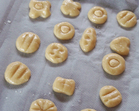 Nos humedecemos las manos (importante para que la masa no se nos pegue), cogemos un trocito de masa y le damos la forma que nos guste. Vamos haciendo así las figuritas hasta terminar con la masa. Yo, como veis, en esto no pierdo demasiado tiempo: lo más sencillas posible.