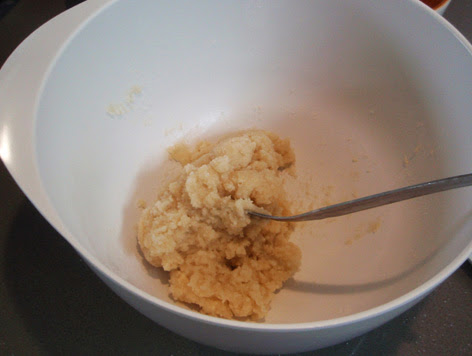 Ponemos en un cuenco la almendra molida y el azúcar glass y los mezclamos con un tenedor.