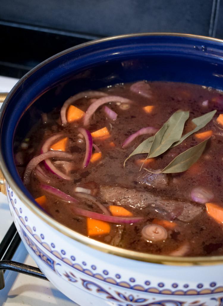 4Para servir, quitar las hojas de laurel de la carne.