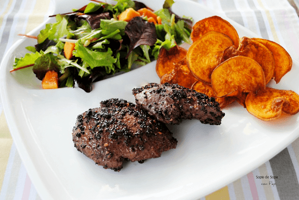No os asustéis de esta receta, ya que la carne se hace a la plancha y está acompañada de una rica y nutritiva ensalada. Lo de los Chips será solo un pequeño capricho