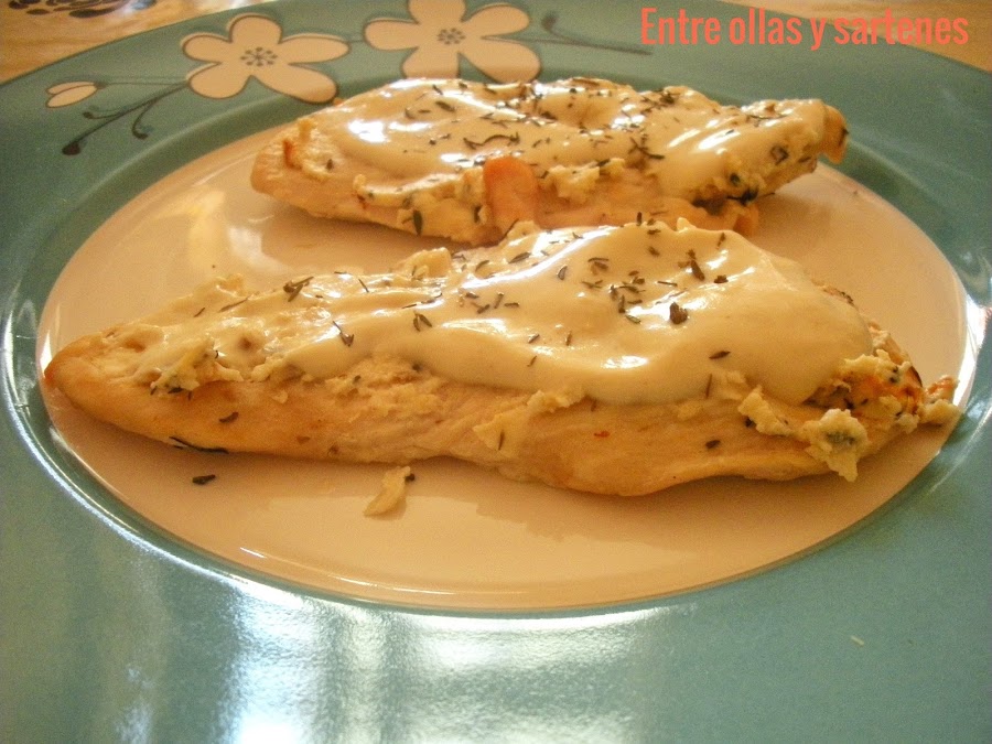 Colocamos los filetes sobre papel de hornear y repartimos la salsa sobre cada uno de ellos, espolvoreamos (como hacer paquetito).