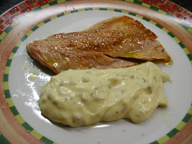 7.- Para servir rociamos el salmón con aceite y sal y lo acompañamos de la mayonesa tártara.