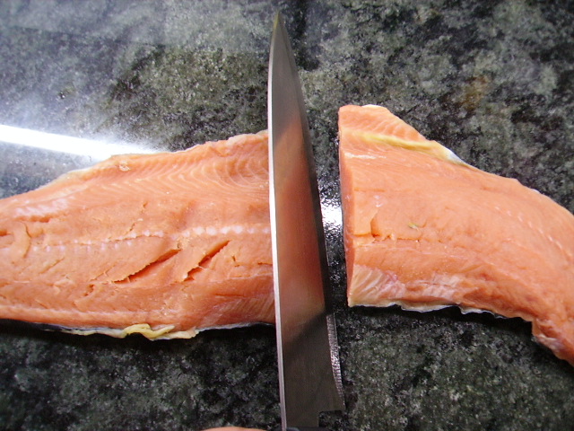 8.- Para comer troceamos el salmón y bañamos en la mayonesa, estará delicioso.