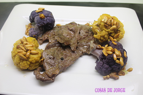 Seguimos experimentando con ingredientes innovadores en la cocina, en esta ocasión probamos unas coliflores de colores que están apareciendo últimamente en los supermercados, en este caso optamos por unos ramilletes de coliflor morada y coliflor naranja para acompañar un filete de ternera.